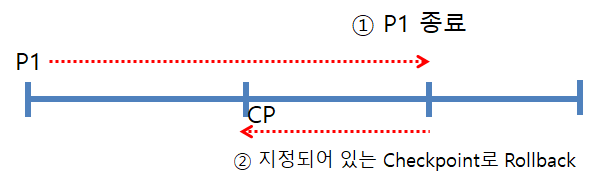 - 만약 Deadlock 상태인 프로세스가 강제 종료되었을때 가장 최근의 Checkpoint에서 재 시작을 할 수 있다. (Rollback)