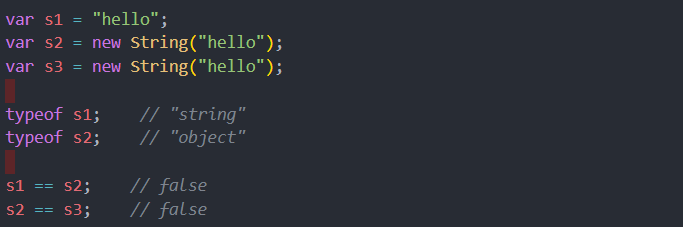 위에 몹쓸 코드를 보면, 원시 타입의 문자열과는 다르게 String 객체(new String())는 진짜 객체이다.