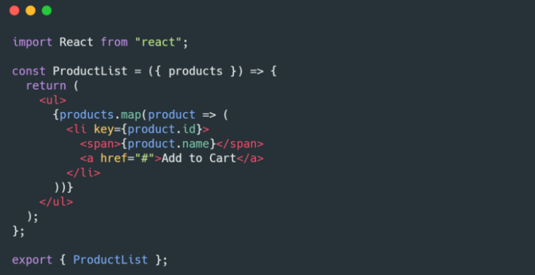 한번 첫 번째 Component를 리팩토링을 해봅시다. 제품 데이터를 Props로 가져와 이전과 마찬가지로 제품 목록을 카드 형태로 rendering 합니다. component state와 라이프사이클 메서드가 필요하지 않기 때문에 함수 Component로 변환할 것입니다.