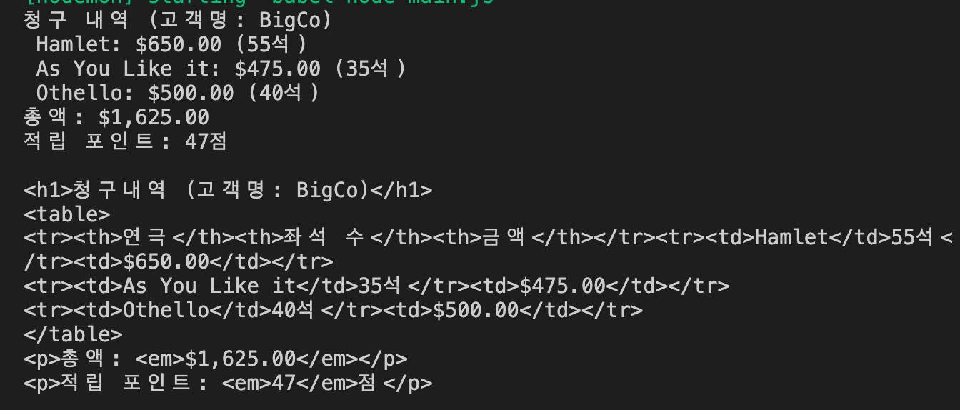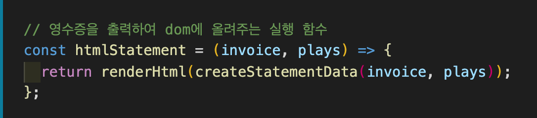 Refactoring(3)에서는 계산 단계와 포맷팅(html로 표현)분리하기 부분을 다루도록 하겠습니다.