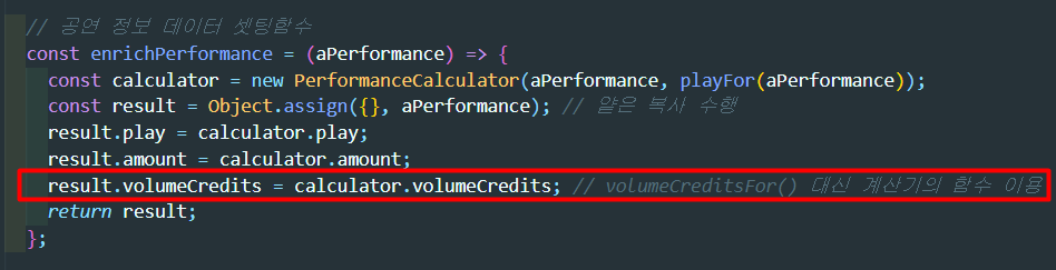 const result = Object.assign({}, aPerformance); // 얕은 복사 수행